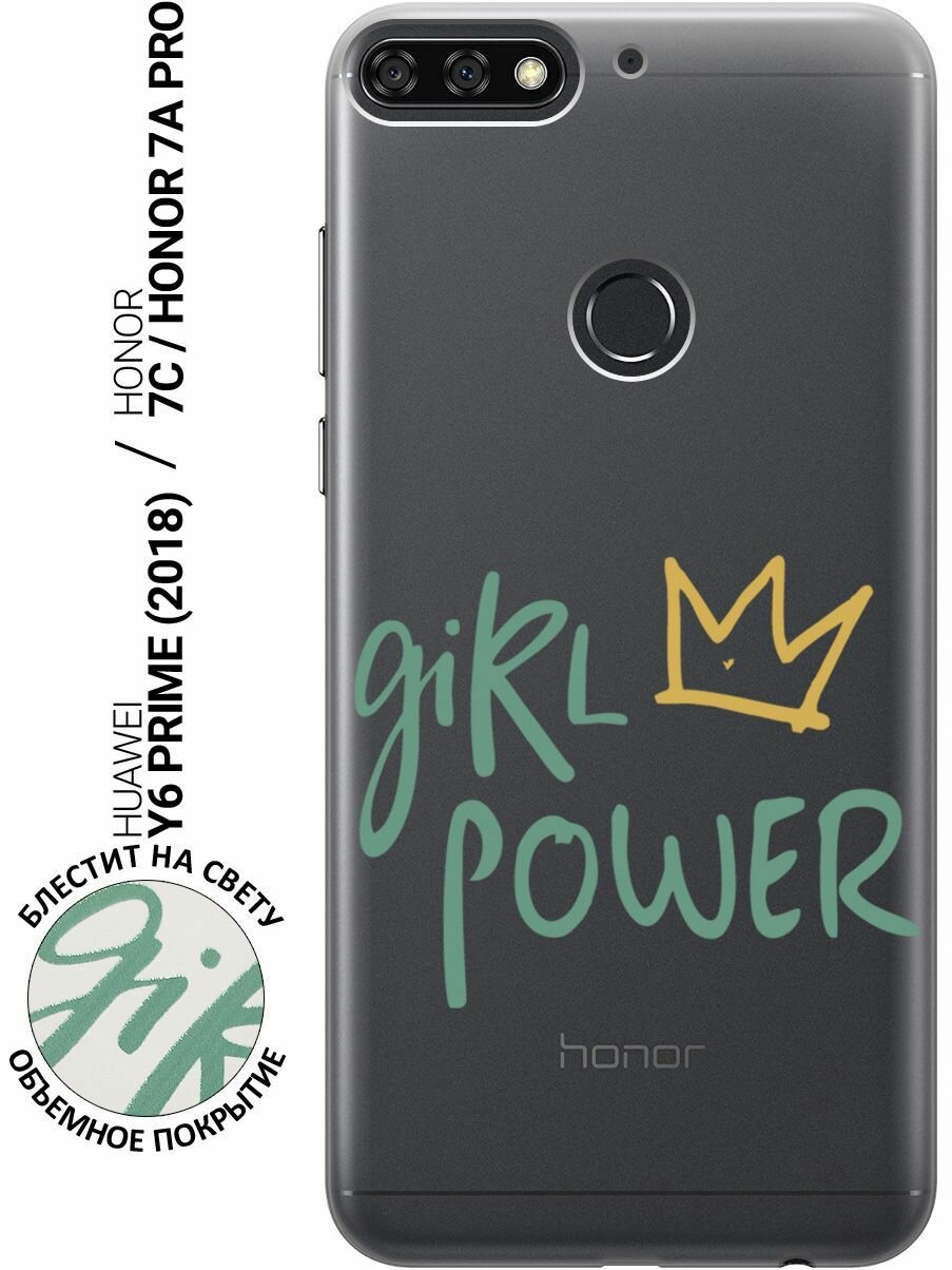 Силиконовый чехол на Honor 7C, 7A Pro, Huawei Y6 Prime (2018), Хуавей У6 Прайм 2018, Хонор 7А Про, 7С с 3D принтом "Girl Power!" прозрачный информация: