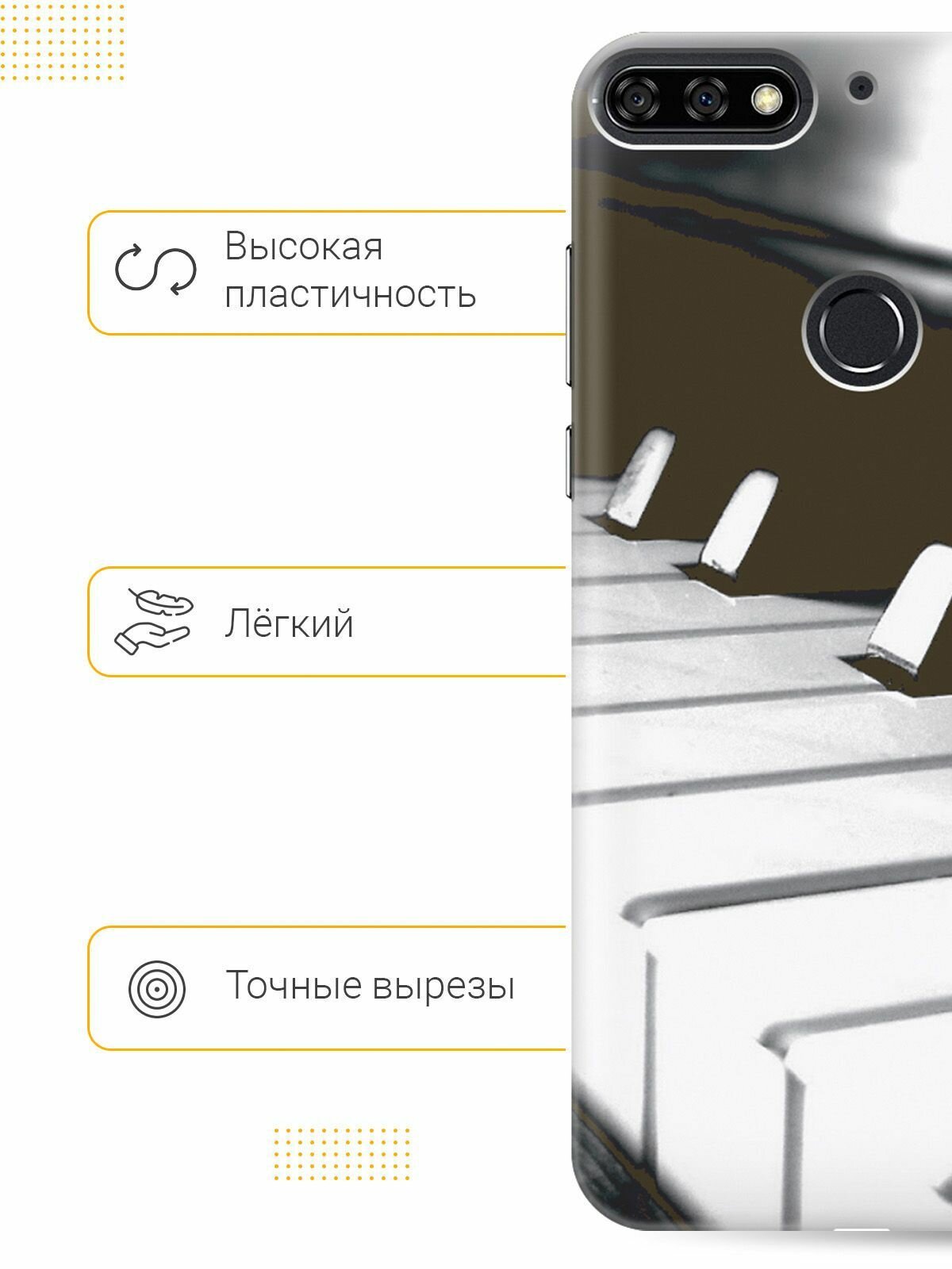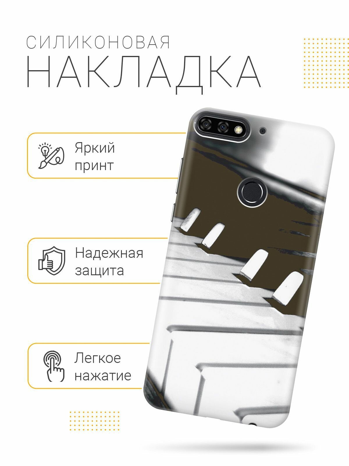 Отзывы на Силиконовый чехол на Huawei Y6 Prime (2018), Honor 7C, Honor 7A Pro, Хуавей У6 Прайм 2018, Хонор 7А Про, Хонор 7С с принтом "Черно-белые клавиши"