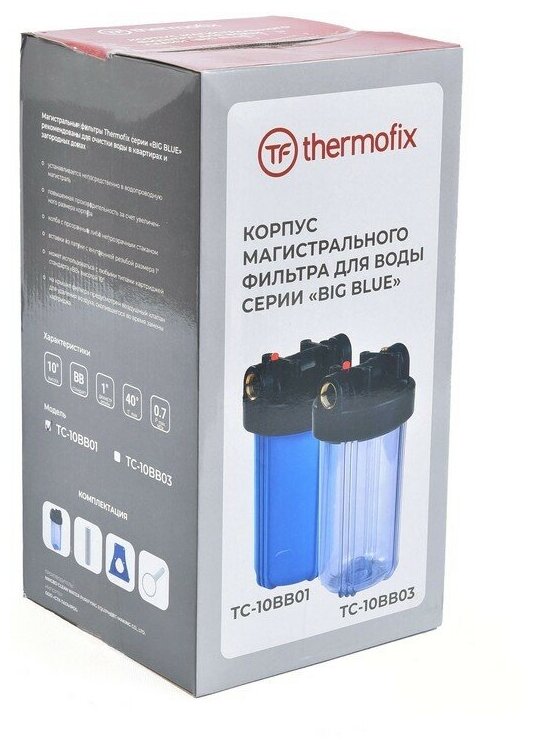 Фильтр для воды "Thermofix" (1" ВВ, 10", прозрачный, с картриджем) (ТС-10BB03)/ фильтр проточный очистки воды ( Big Blue) информация: