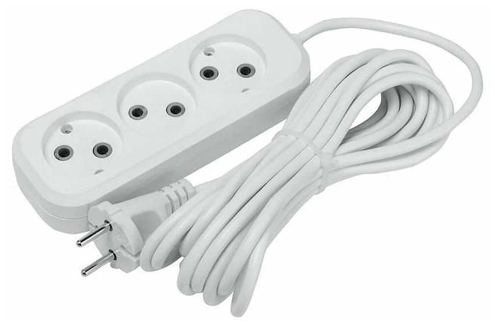 Удлинитель 3гн без З/К 5м белый 6А ПВС 2х0,75 "джетт" РС-3