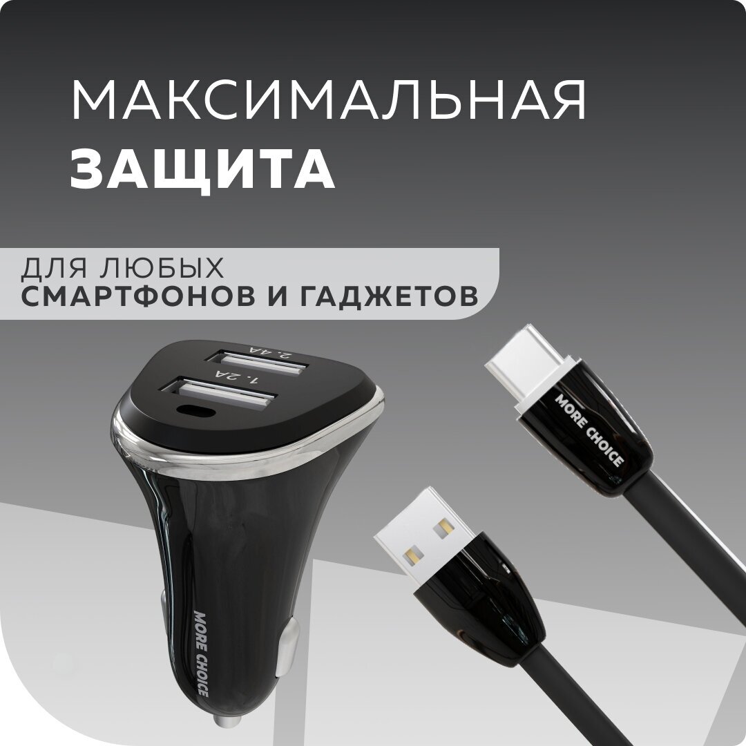 Автомобильное зарядное устройство 2USB 2.4A с кабелем Type-C More choice AC22a Black