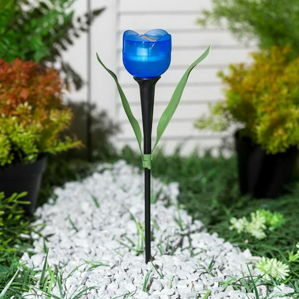 Отзывы на Садовый светильник на солнечной батарее "Синий тюльпан", 4 x 30 x 4 см, свечение белое