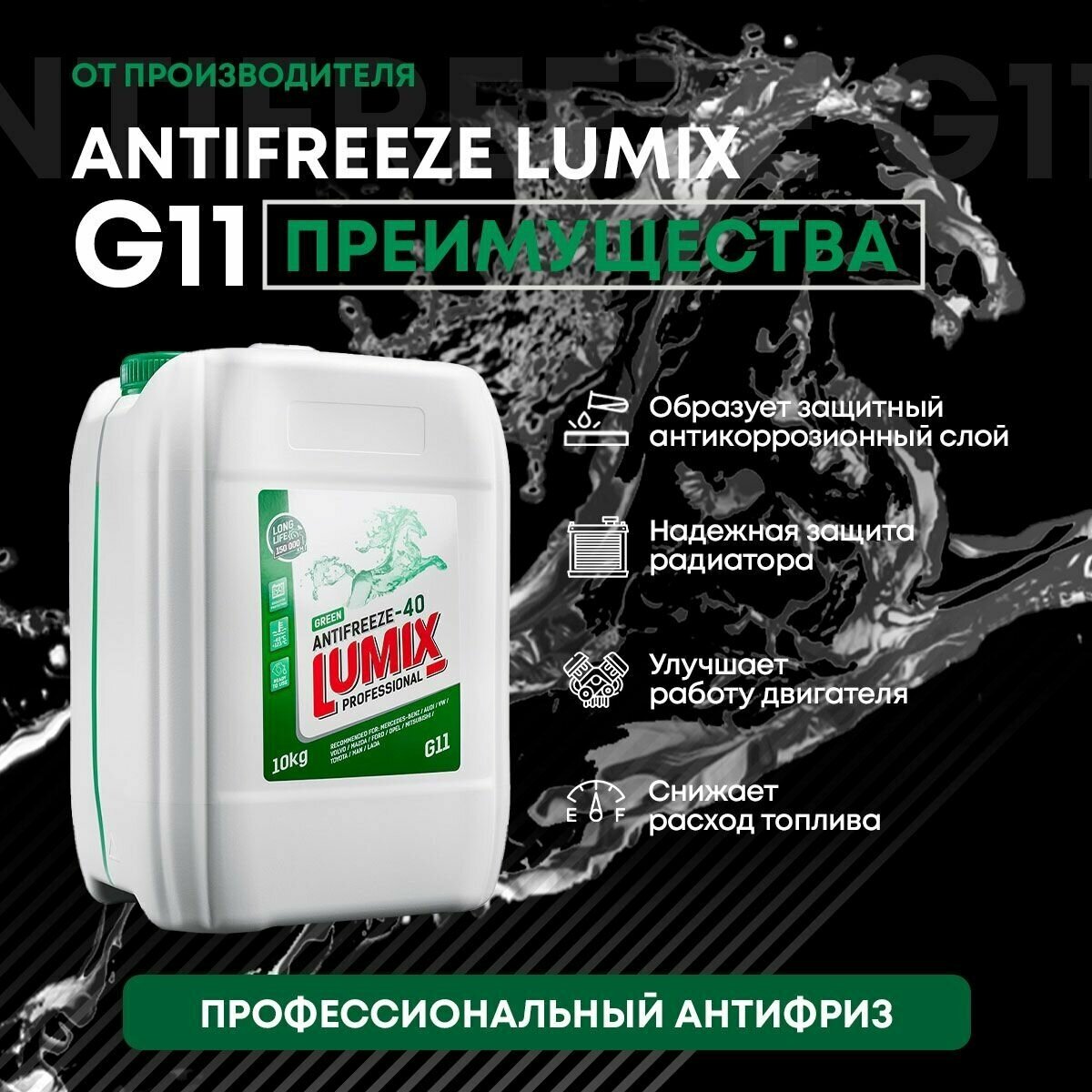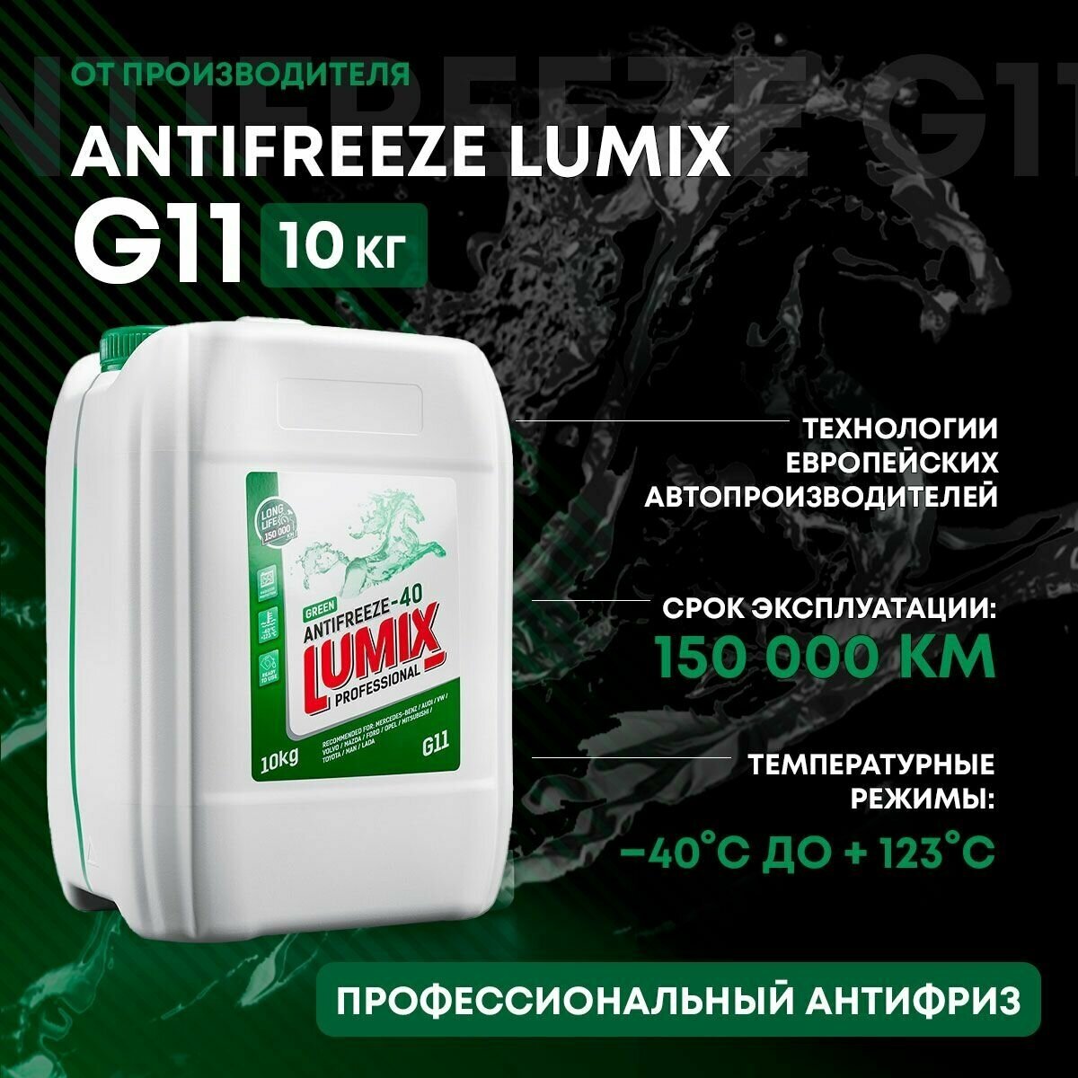 10 цен на LUMIX 858986 Антифриз LUMIX GREEN G11 (10кг)