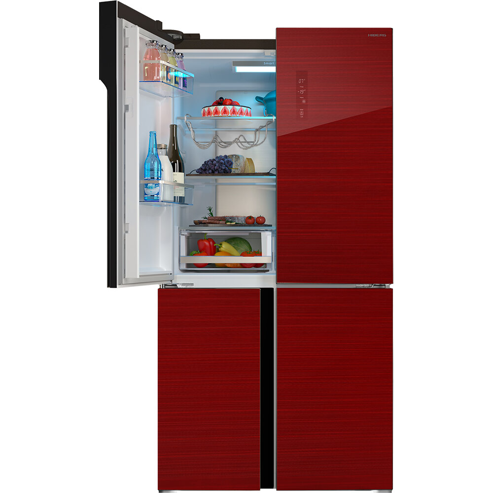 10 цен на Холодильник HIBERG RFQ-500DX NFGR inverter отдельностоящий, 4 двери, 545 л, красное стекло с полоской