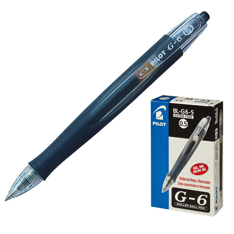 Ручка гелевая автоматическая Pilot BL-G6-5 (0.3мм, черный, резиновая манжетка) (BL-G6-5-B)