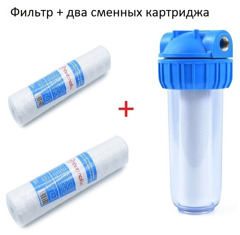 Фильтр для воды"Thermofix" (3/4" колба с гайкой, 10", с картриджем) + два картриджа (полипропиленовая нить,10 мкн) Slim Line информация: