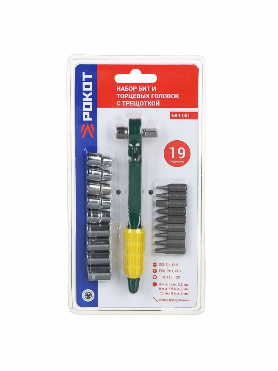 10 цен на Набор бит и торцевых головок с трещоткой 19пр рокот