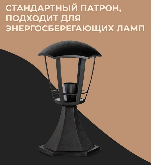 Светильник садово-парк. Camelion PP5104 C02 НТУ 07-60-003 У1 «Валенсия 1» черный, 6-гран., пластик, 230В,