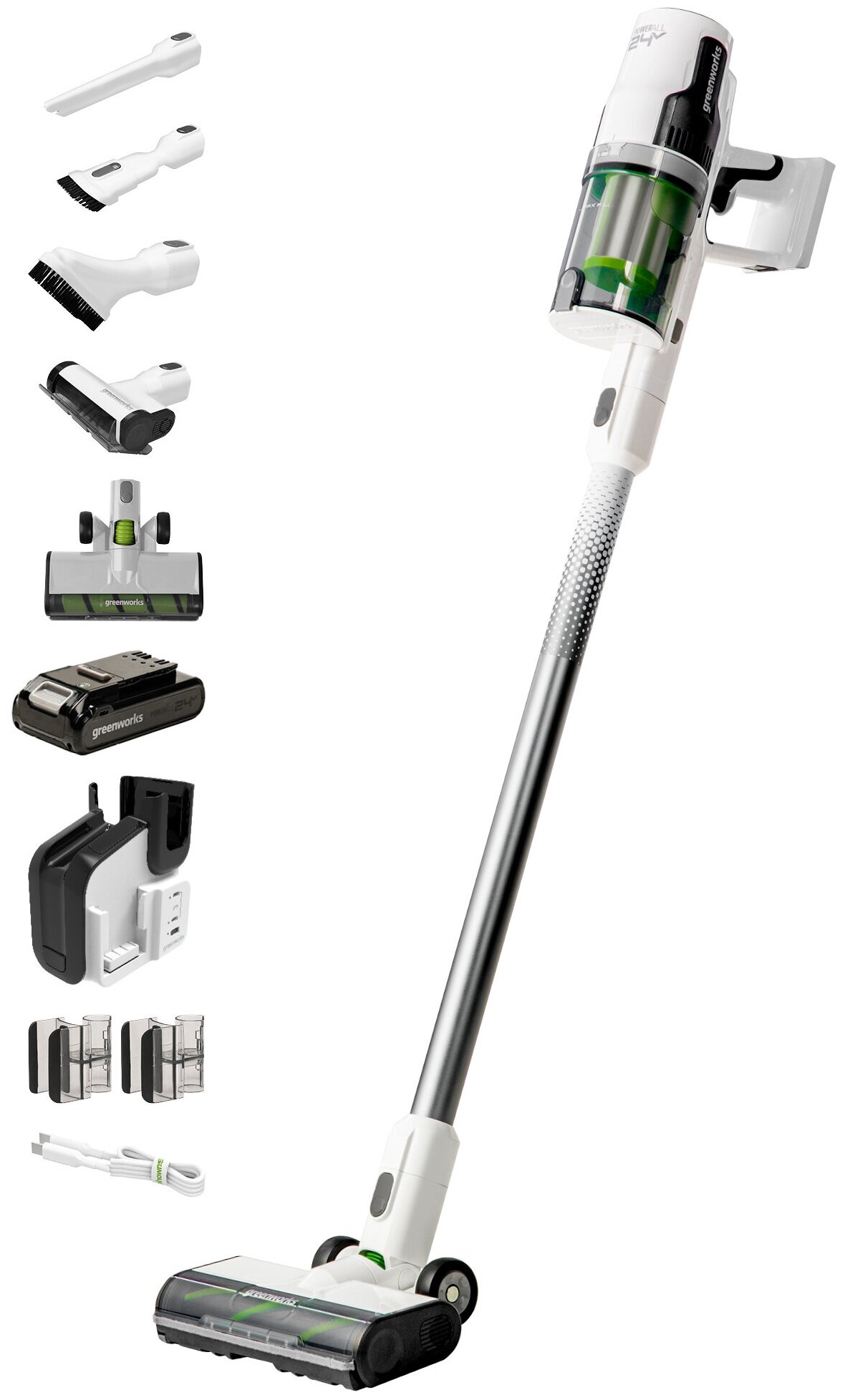 10 цен на Пылесос вертикальный GREENWORKS GD24SVK4D 24 V White с АКБ и ЗУ 4701107UB