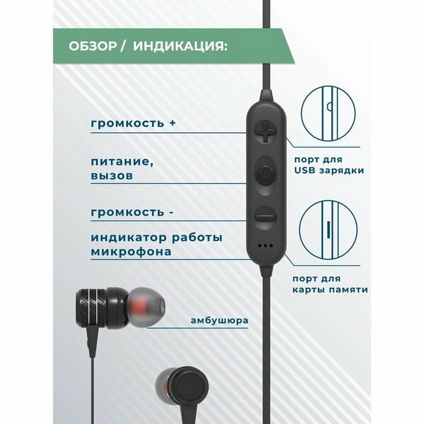 Гарнитура Bluetooth внутриканальная More Choice BG20 с шейным шнурком + сумочка для наушников (Black