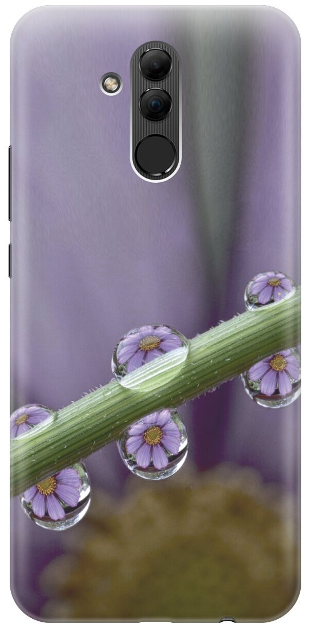 Силиконовый чехол на Huawei Mate 20 Lite, Хуавей Мейт 20 Лайт с эффектом блеска "Сиреневые цветы в каплях" информация: