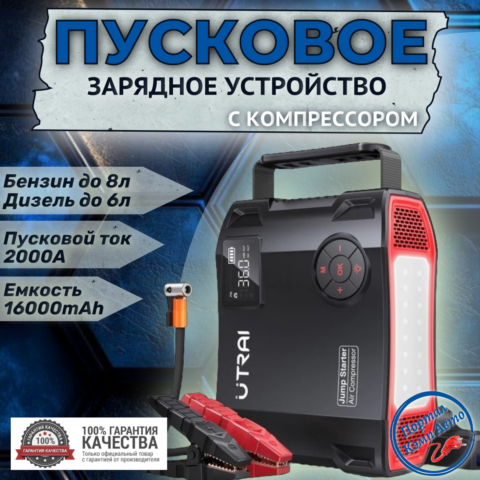 Пусковое портативное устройство бустер Utrai с компрессором 16000mAh 2000A. информация:
