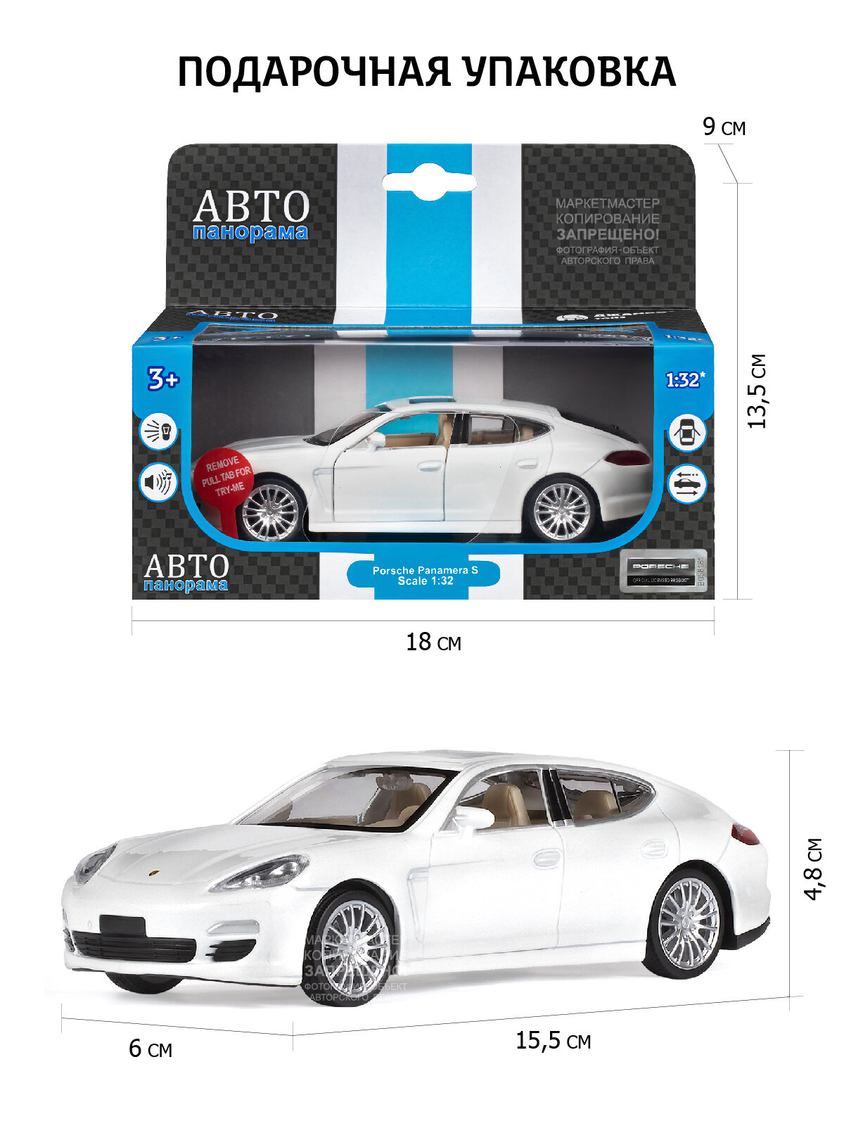 Отзывы на ТМ "Автопанорама" Машинка металлическая 1:32 Porsche Panamera S,белый, свет, звук, откр. двери, инерция, в/к 17,5*13,5*9 см JB1251137