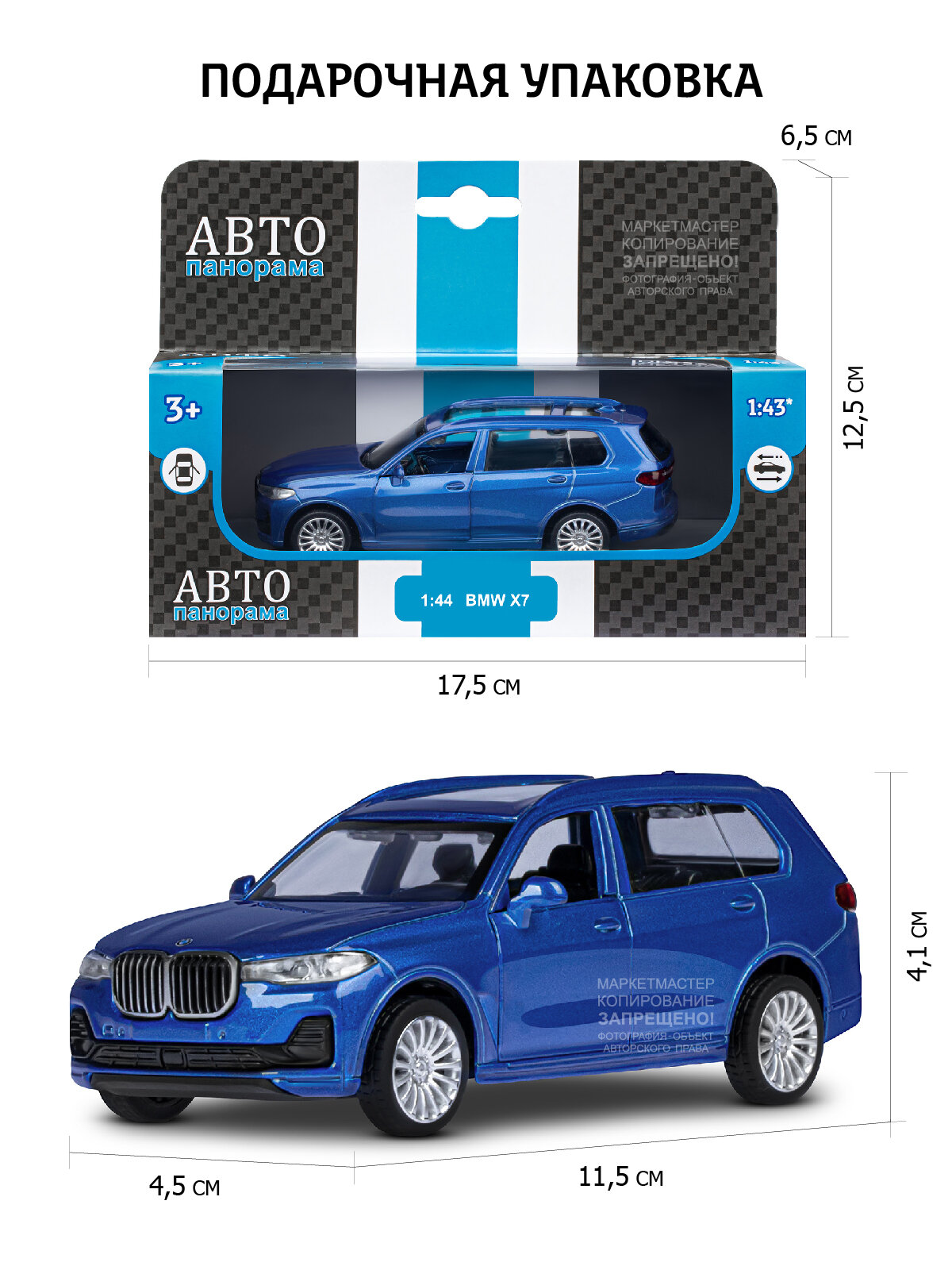 Отзывы на Машинка металлическая Автопанорама 1:44, BMW X7, синий, инерция, открываются двери, в коробке, 17,5х12,5х6,5 см (JB1251257)