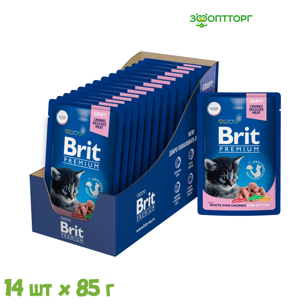 10 цен на Brit Premium пауч для котят (кусочки в соусе) Белая рыба, 85 г. упаковка 14 шт