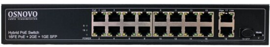 OSNOVO PoE коммутатор FE, 16 *10/100 Base-T с PoE, 2 x GE Uplink (RJ45), 1 x GE SFP Uplink, мощность PoE на порт до 30W, суммарн