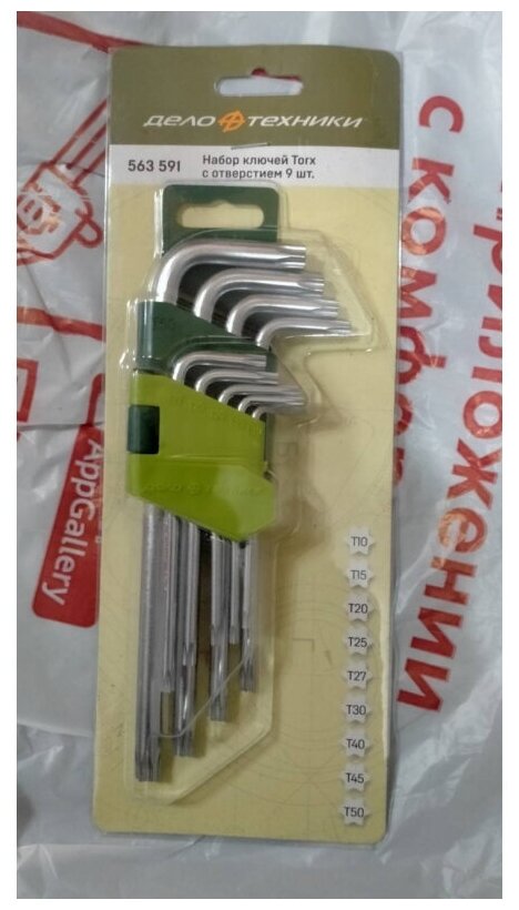 Набор ключей TORX 9 шт с отв. (Т10,Т15,Т20,Т25,Т27,Т30,Т40,Т45,Т50) дело техники 563591