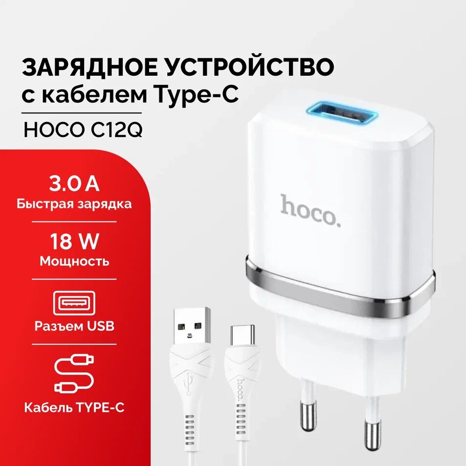 10 цен на Зарядное устройство c кабелем Type-C 18W 3A