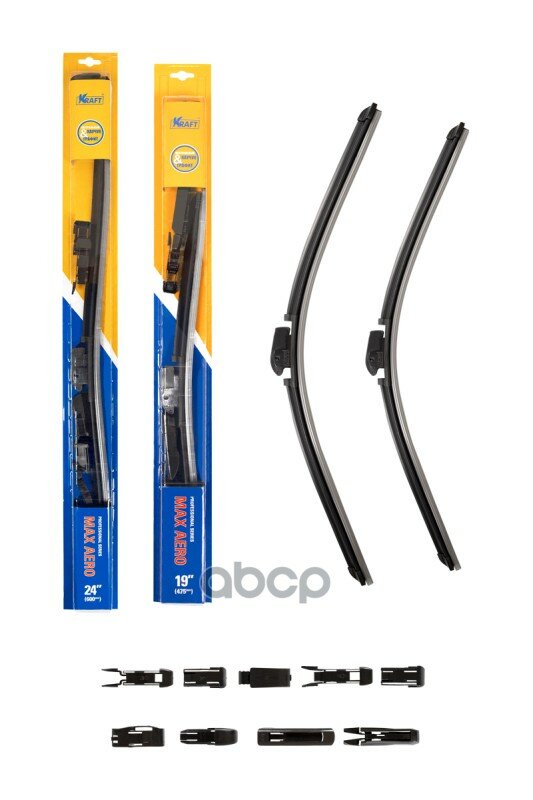 Комплект бескаркасных щеток стеклоочистителя KRAFT 600/475 мм, 10 адаптеров KT 830851