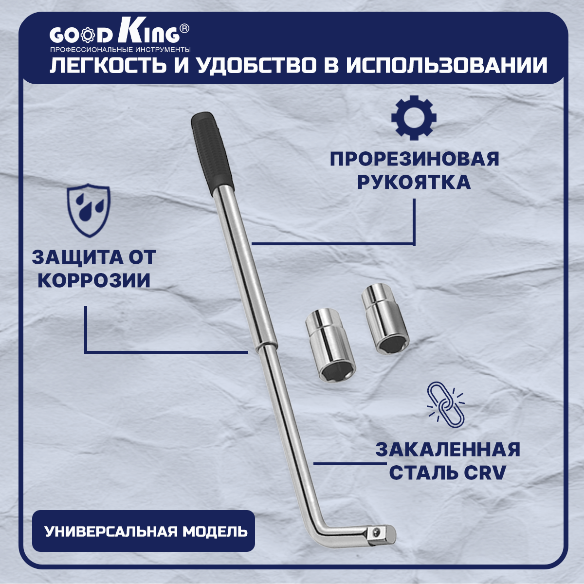 Ключ баллонный телескопический со сменными головками GOODKING, 17/19, 21/23мм KB-10003 (3 предмета), ключ балонный Г-образный 900 ₽