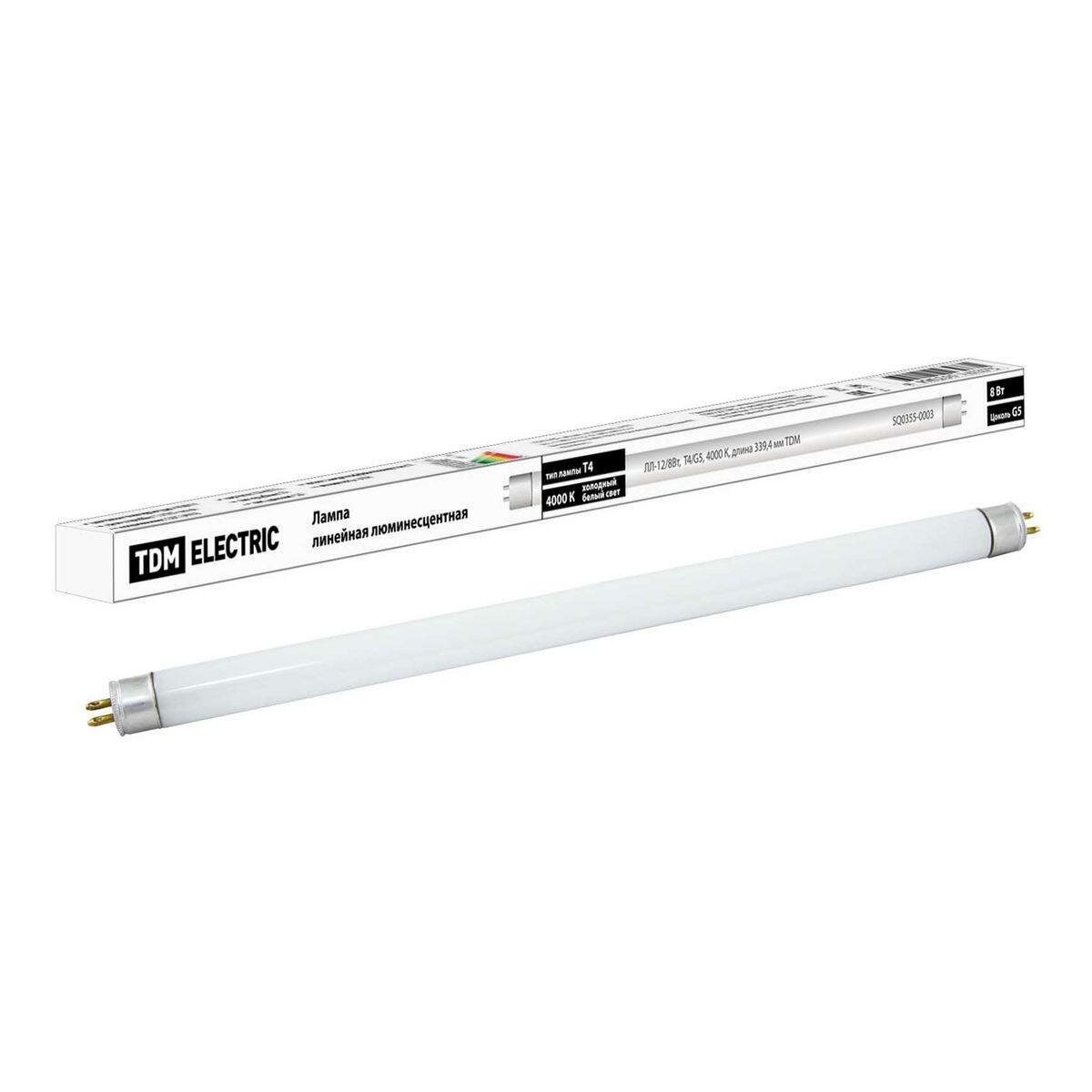 Лампа TDM люминесцентная линейная двухцокольная ЛЛ-12/8Вт, T4/G5, 4000 К, длина 339,4мм