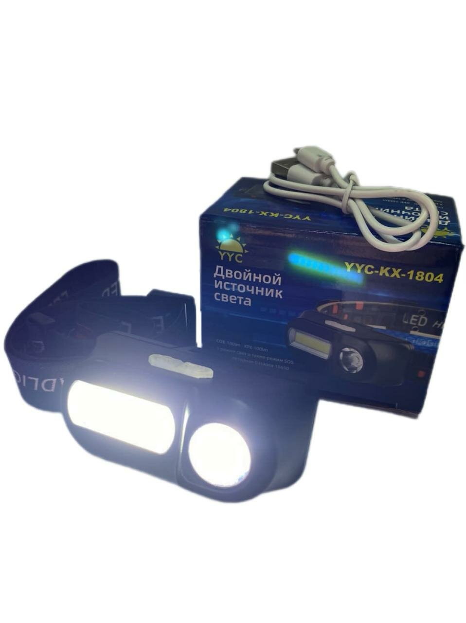 Фонарь налобный со сменным аккумулятором, светодиодом XPE и COB лентой 270 ₽