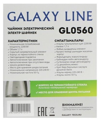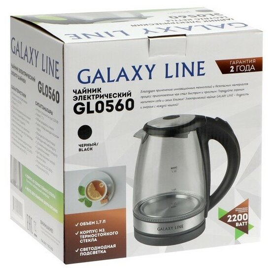 Чайник Galaxy LINE GL0560, стекло/черный информация: