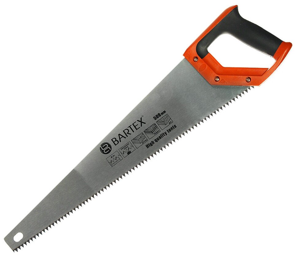 Ножовка ПО дереву 500ММ заточ 2D закал крупный ЗУБ 2К-РУЧКА 4TPI/5Т BARTEX информация: