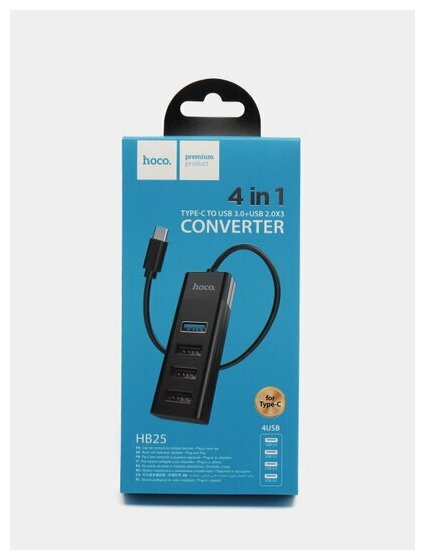 Отзывы на USB HUB разветвитель HOCO HB25 Easy 4 в 1 USB3.0 (m) - 1xUSB3.0 (f) + 3xUSB2.0 (f), 30 см, черный
