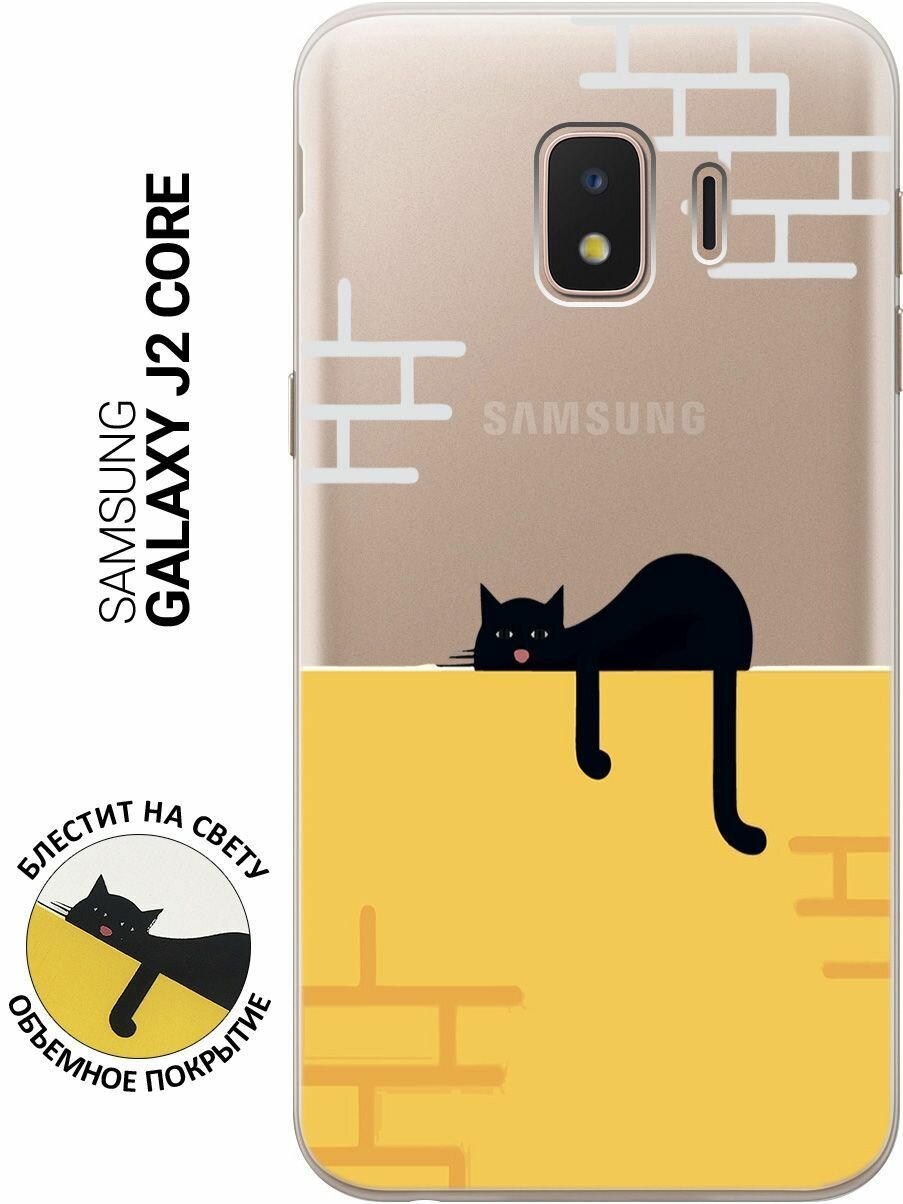 Силиконовый чехол на Samsung Galaxy J2 Core / Самсунг Джей 2 Кор с 3D принтом "Lazy Cat" прозрачный 401 ₽