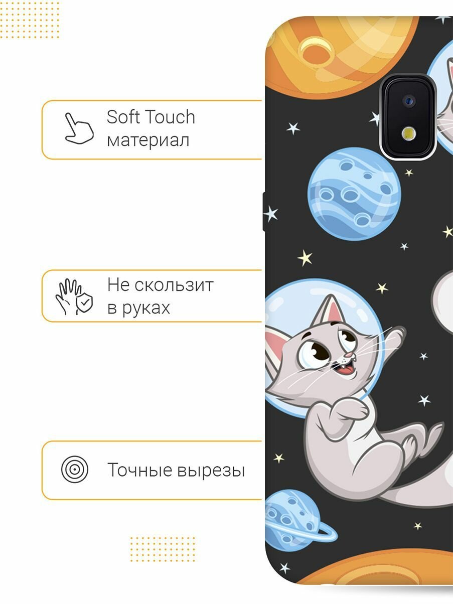 Матовый Soft Touch силиконовый чехол на Samsung Galaxy J2 Core, Самсунг Джей 2 Кор с 3D принтом "CosmoCats" черный информация: