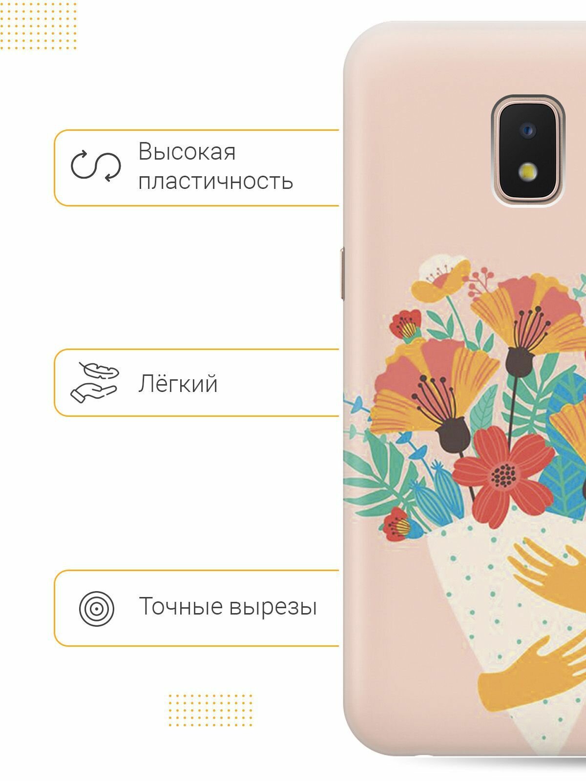 Отзывы на Силиконовый чехол на Samsung Galaxy J2 Core, Самсунг Джей 2 Кор с принтом "Букет на розовом"