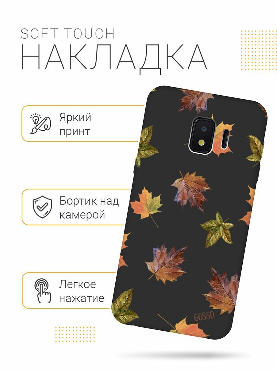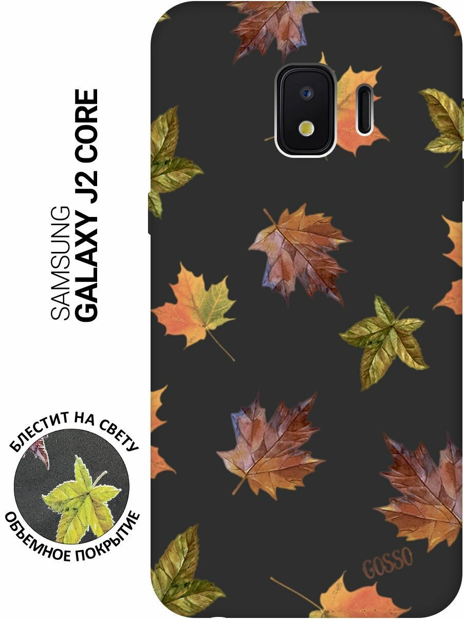 Матовый Soft Touch силиконовый чехол на Samsung Galaxy J2 Core, Самсунг Джей 2 Кор с 3D принтом "Maple" черный информация: