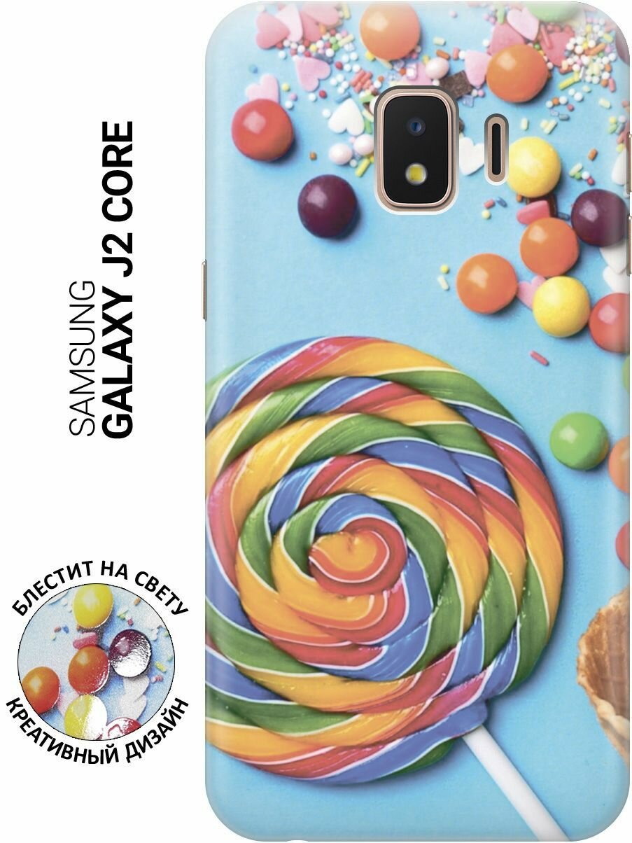 Силиконовый чехол на Samsung Galaxy J2 Core, Самсунг Джей 2 Кор с эффектом блеска "Разноцветный леденец" информация: