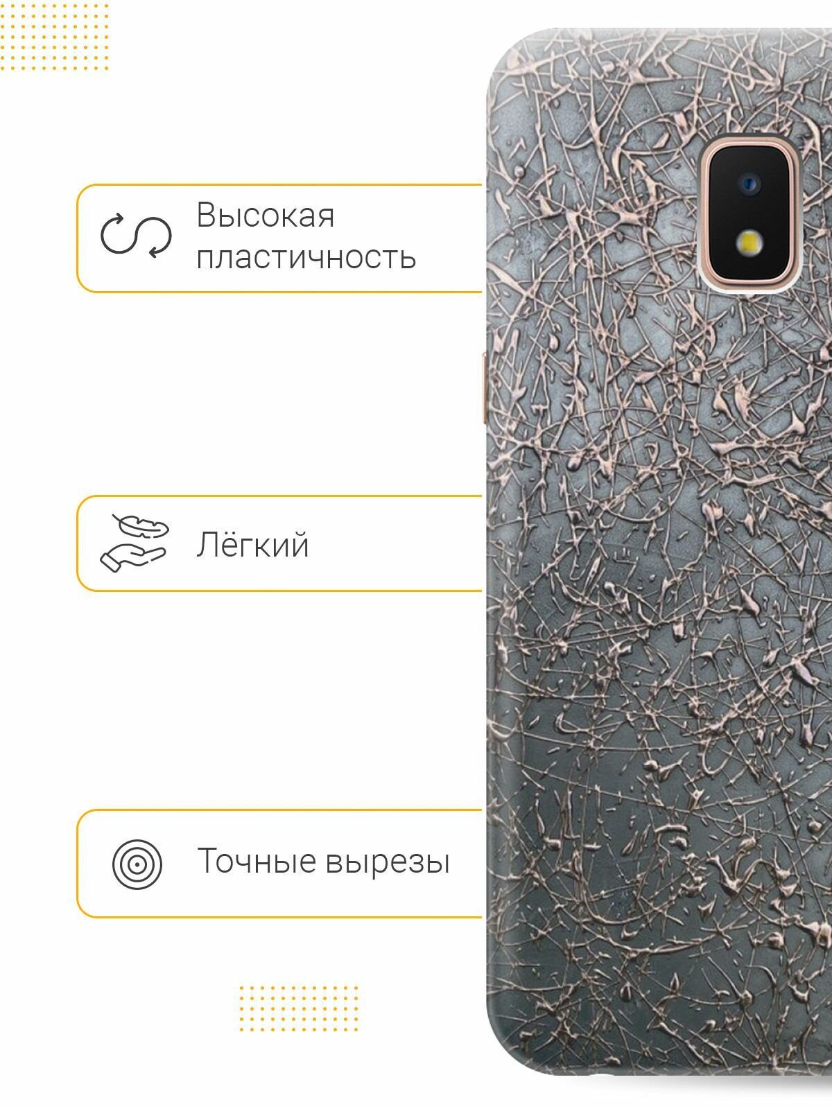 Отзывы на Силиконовый чехол на Samsung Galaxy J2 Core, Самсунг Джей 2 Кор с принтом "Бронзовые брызги"