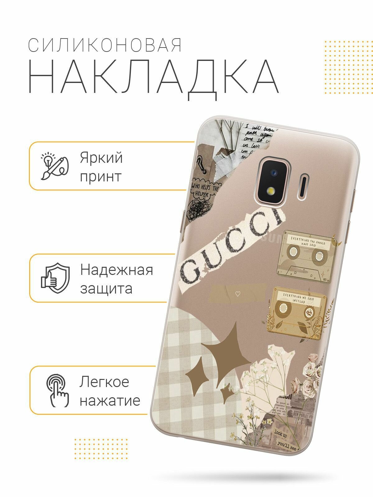 Отзывы на Силиконовый чехол на Samsung Galaxy J2 Core, Самсунг Джей 2 Кор с 3D принтом "GUCCI Stickers" прозрачный