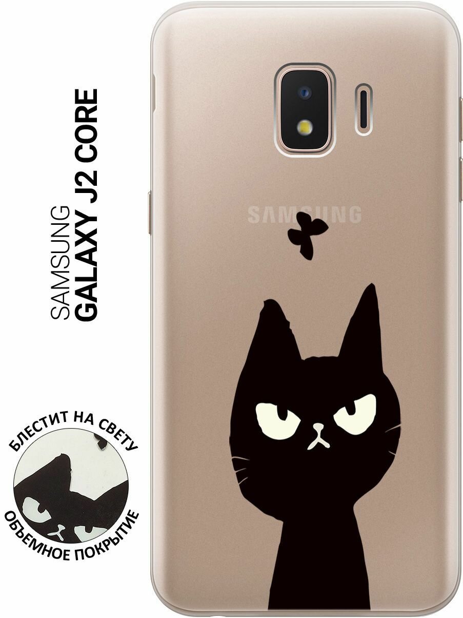 Силиконовый чехол на Samsung Galaxy J2 Core, Самсунг Джей 2 Кор с 3D принтом "Disgruntled Cat" прозрачный информация: