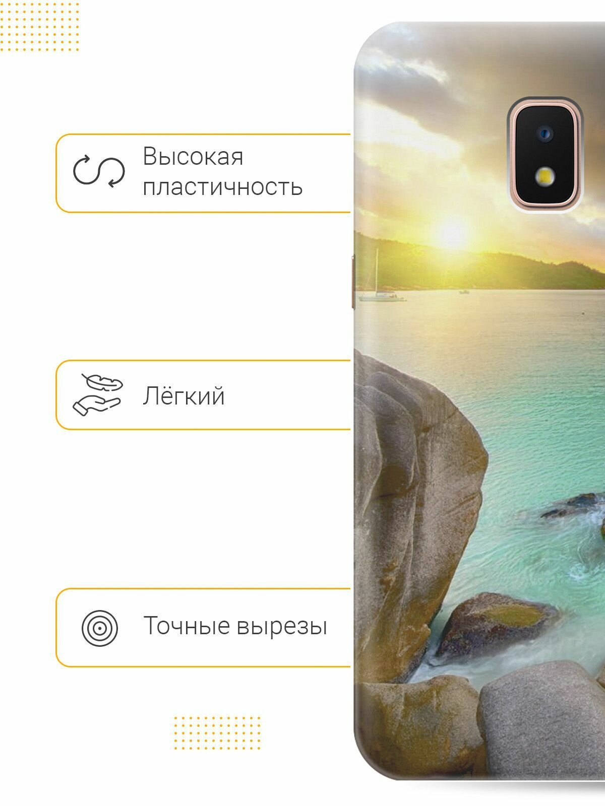 Силиконовый чехол на Samsung Galaxy J2 Core, Самсунг Джей 2 Кор с принтом "Закат на каменистом берегу" информация: