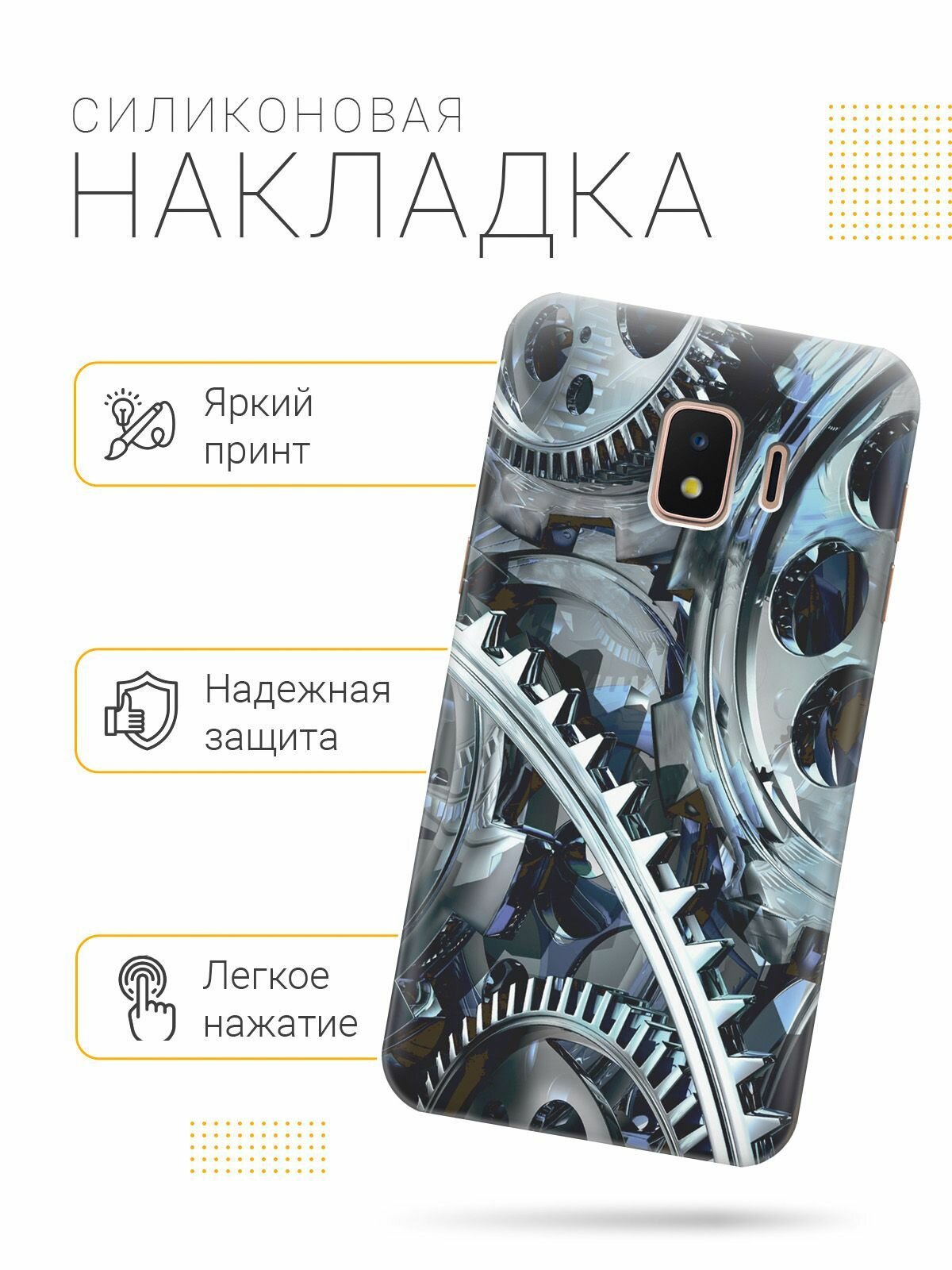 Отзывы на Силиконовый чехол на Samsung Galaxy J2 Core, Самсунг Джей 2 Кор с принтом "Стальные шестеренки"