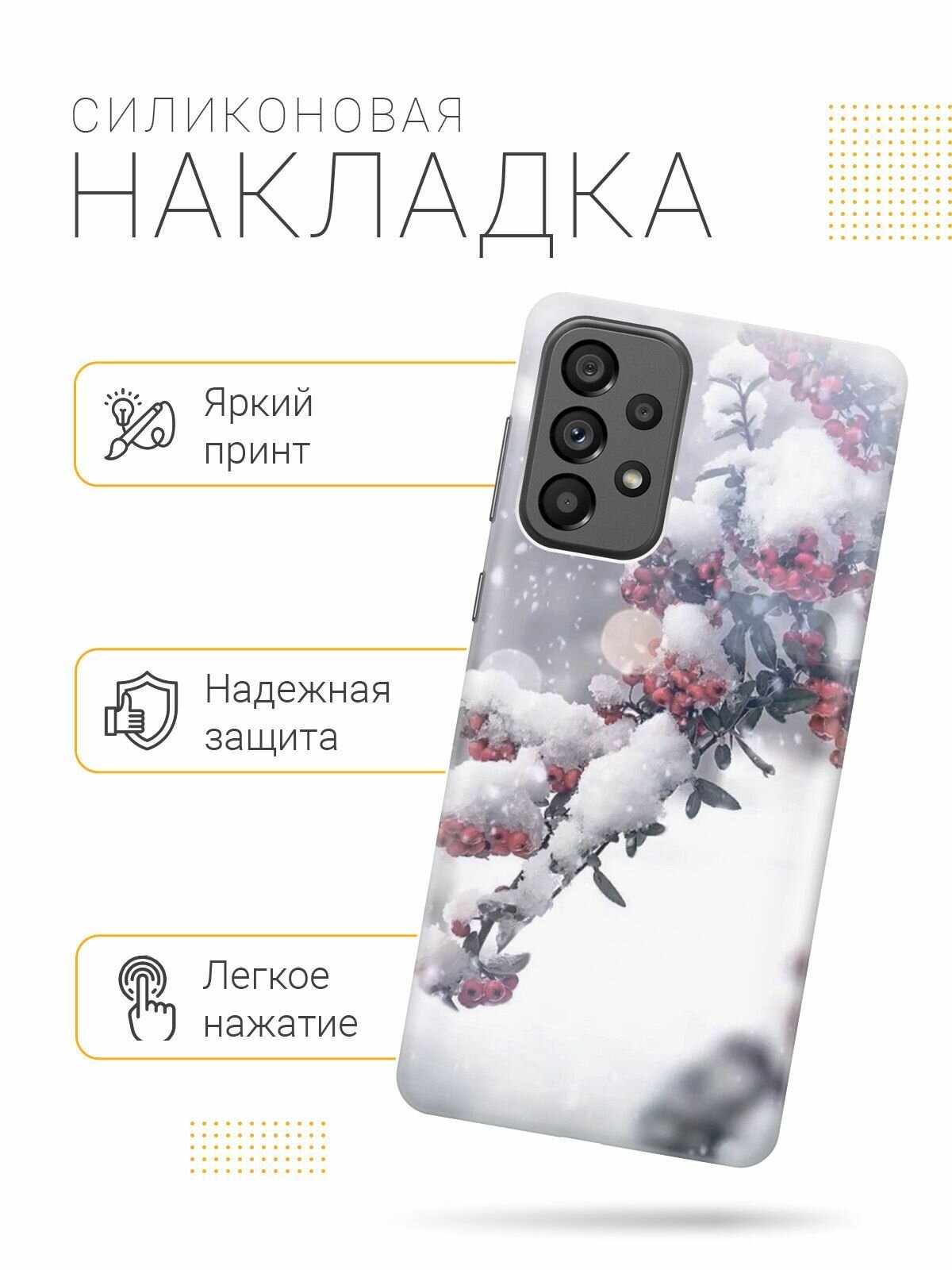 Силиконовый чехол на Samsung Galaxy A73 5G, Самсунг А73 5Г с принтом "Заснеженная рябина" информация:
