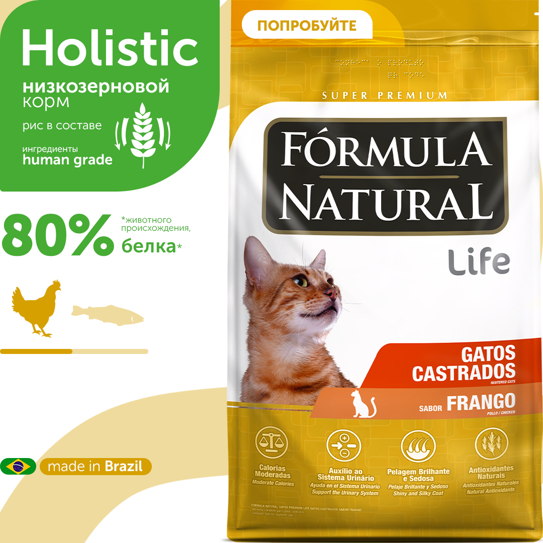 10 цен на Сухой корм для стерилизованных или кастрированных кошек и котов, Formula Natural Life Super Premium - низкозерновой, с курицей, Бразилия, 2 кг