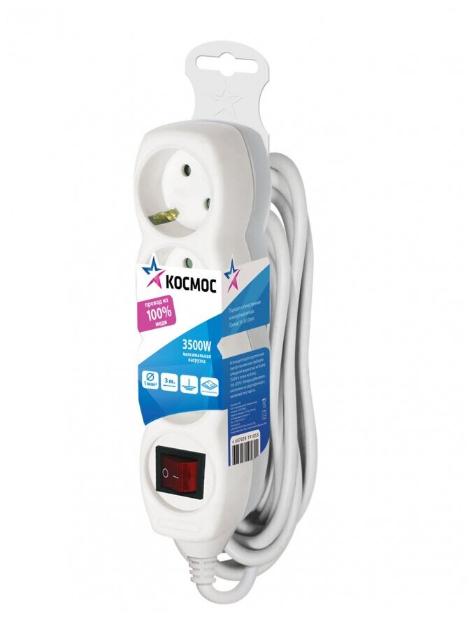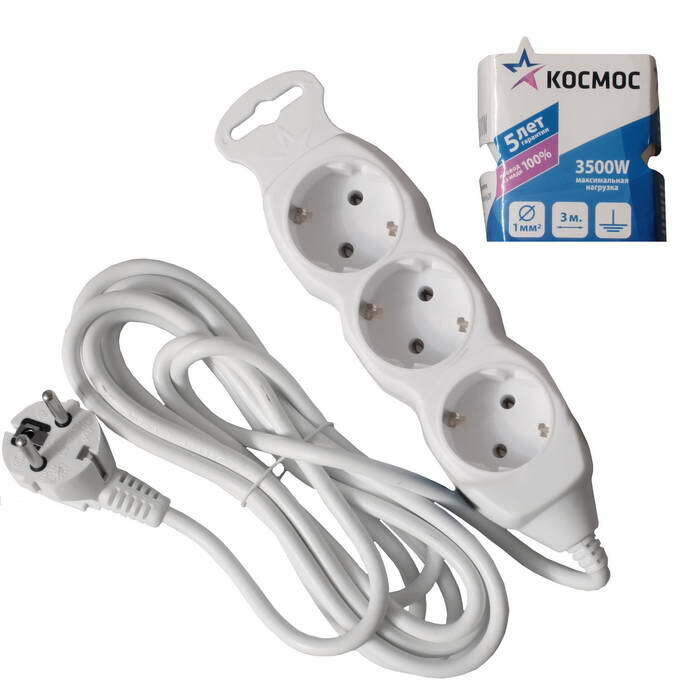 10 цен на Удлинитель Космос 3 Socket 3m White YKsm3m-3g-Z(K)