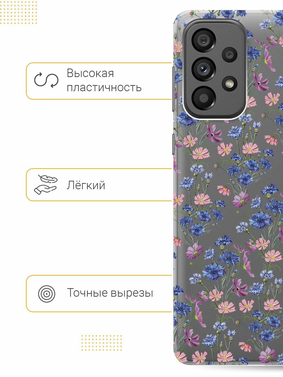 Отзывы на Силиконовый чехол на Samsung Galaxy A73 5G, Самсунг А73 5Г с 3D принтом "Lovely Cornflowers" прозрачный