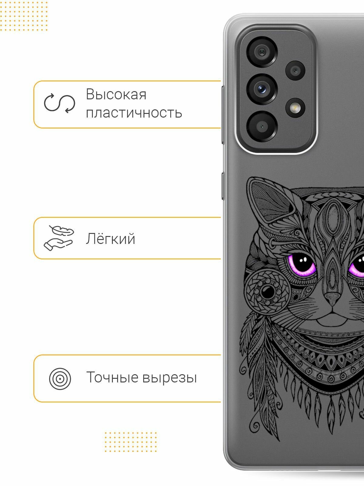 Отзывы на Силиконовый чехол на Samsung Galaxy A73 5G, Самсунг А73 5Г с 3D принтом "Grand Cat" прозрачный