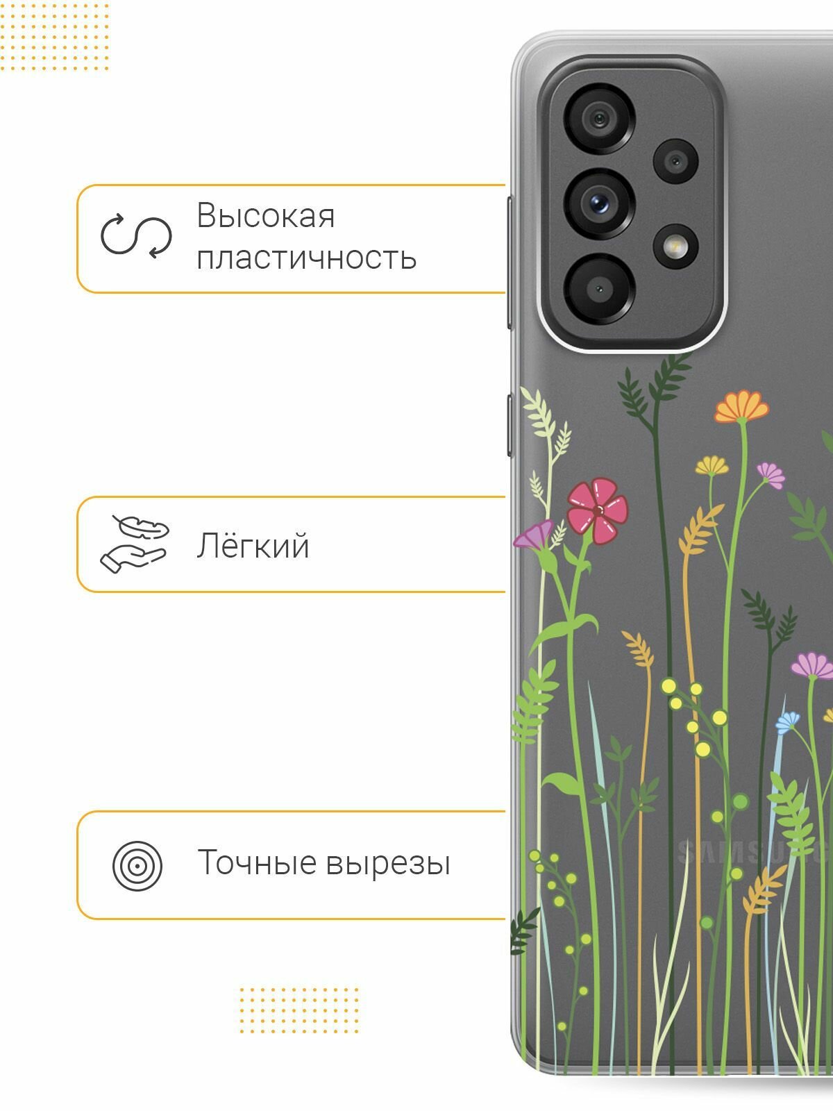 Отзывы на Силиконовый чехол на Samsung Galaxy A73 5G, Самсунг А73 5Г с 3D принтом "Flowers and Fern" прозрачный