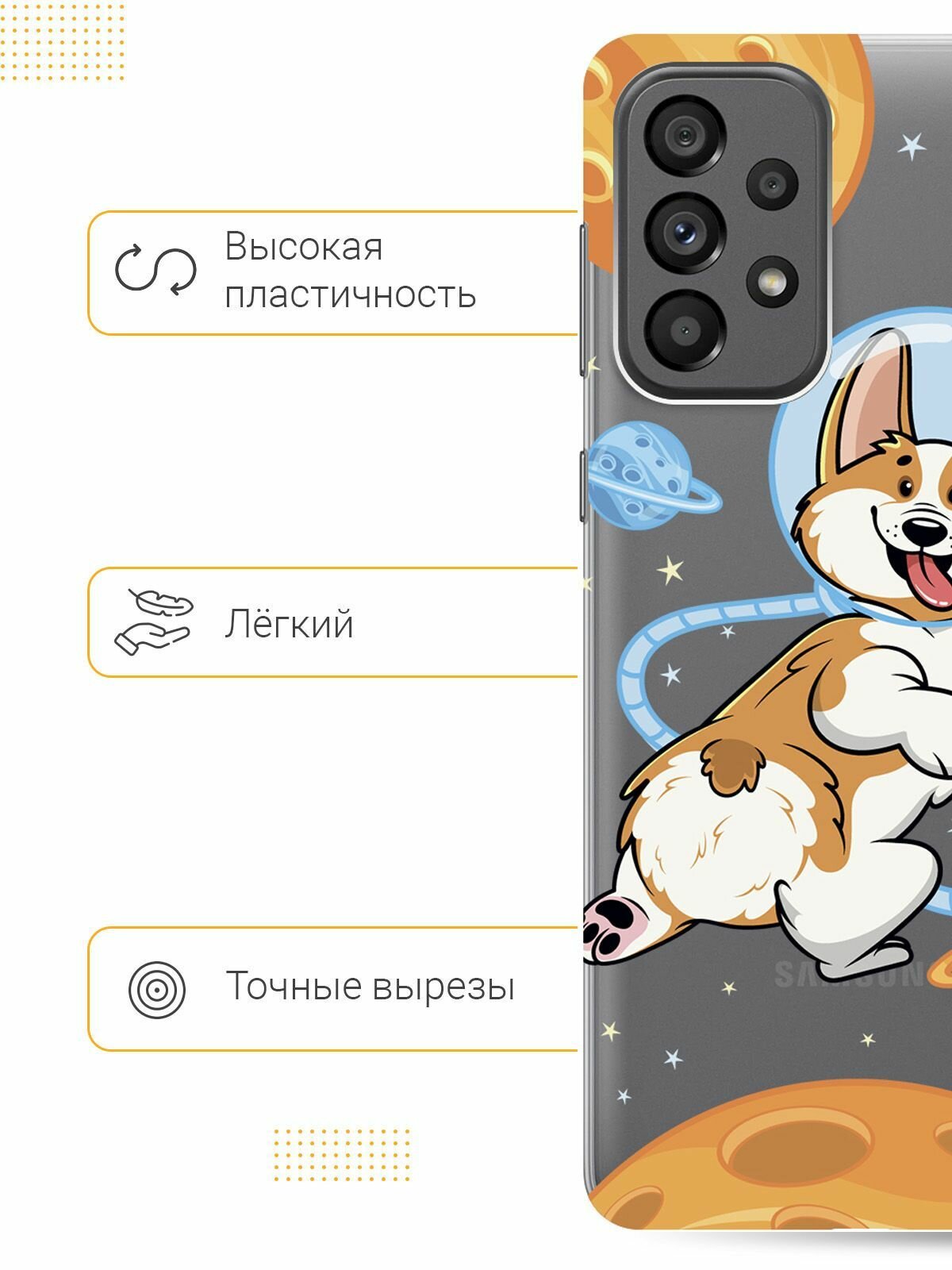 Отзывы на Силиконовый чехол на Samsung Galaxy A73 5G, Самсунг А73 5Г с 3D принтом "CosmoCorgi" прозрачный