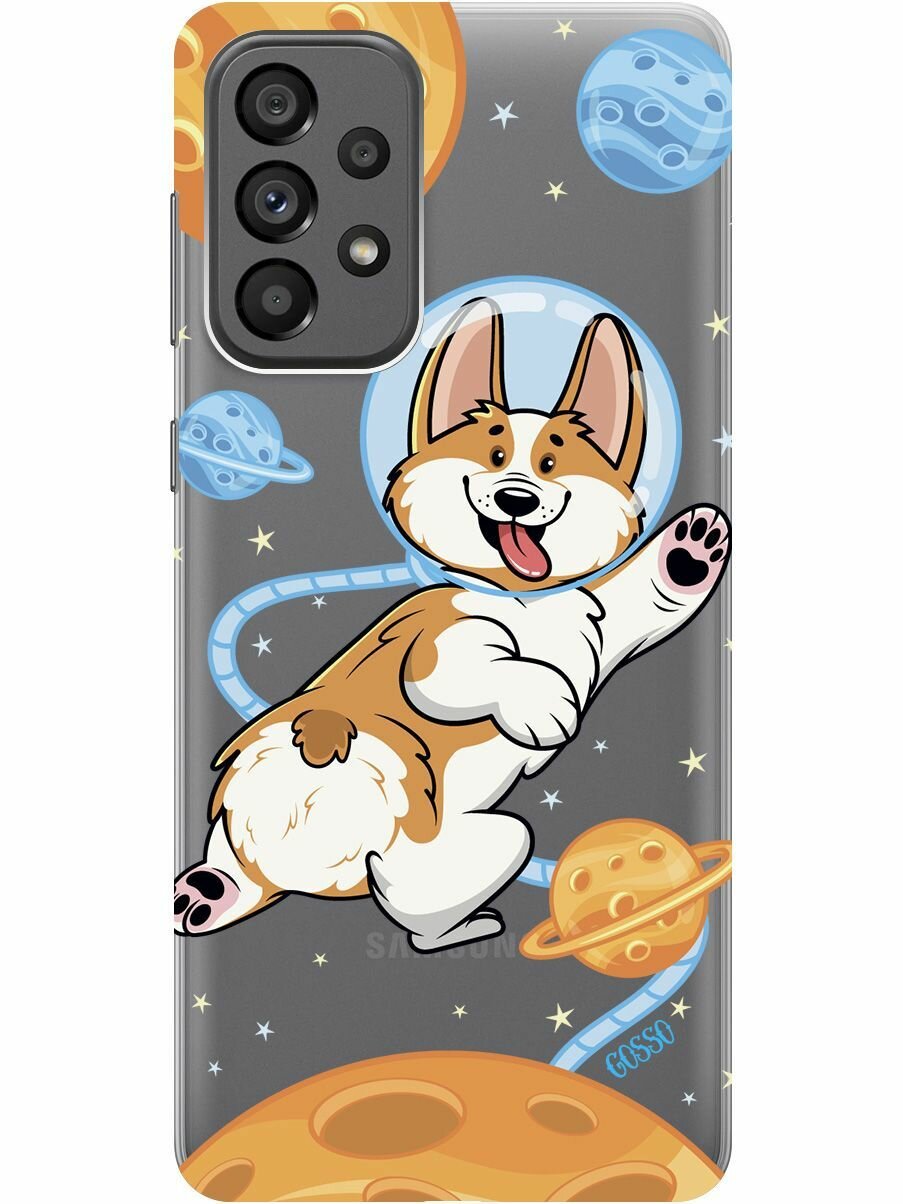 Силиконовый чехол на Samsung Galaxy A73 5G / Самсунг А73 5Г с 3D принтом "CosmoCorgi" прозрачный 401 ₽