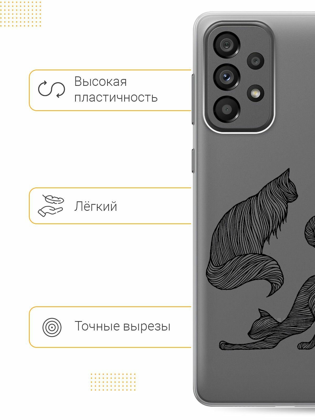 Силиконовый чехол на Samsung Galaxy A73 5G / Самсунг А73 5Г с 3D принтом "Kittens and trails" прозрачный 401 ₽