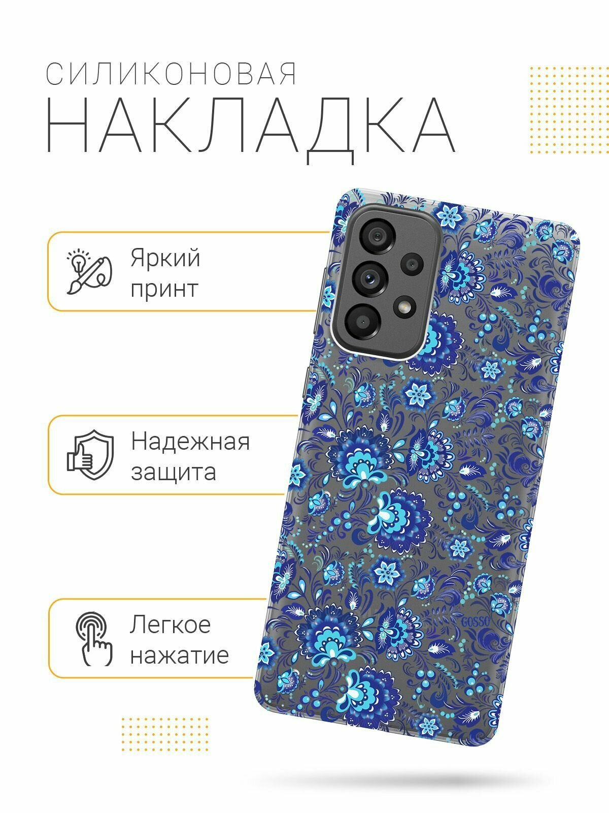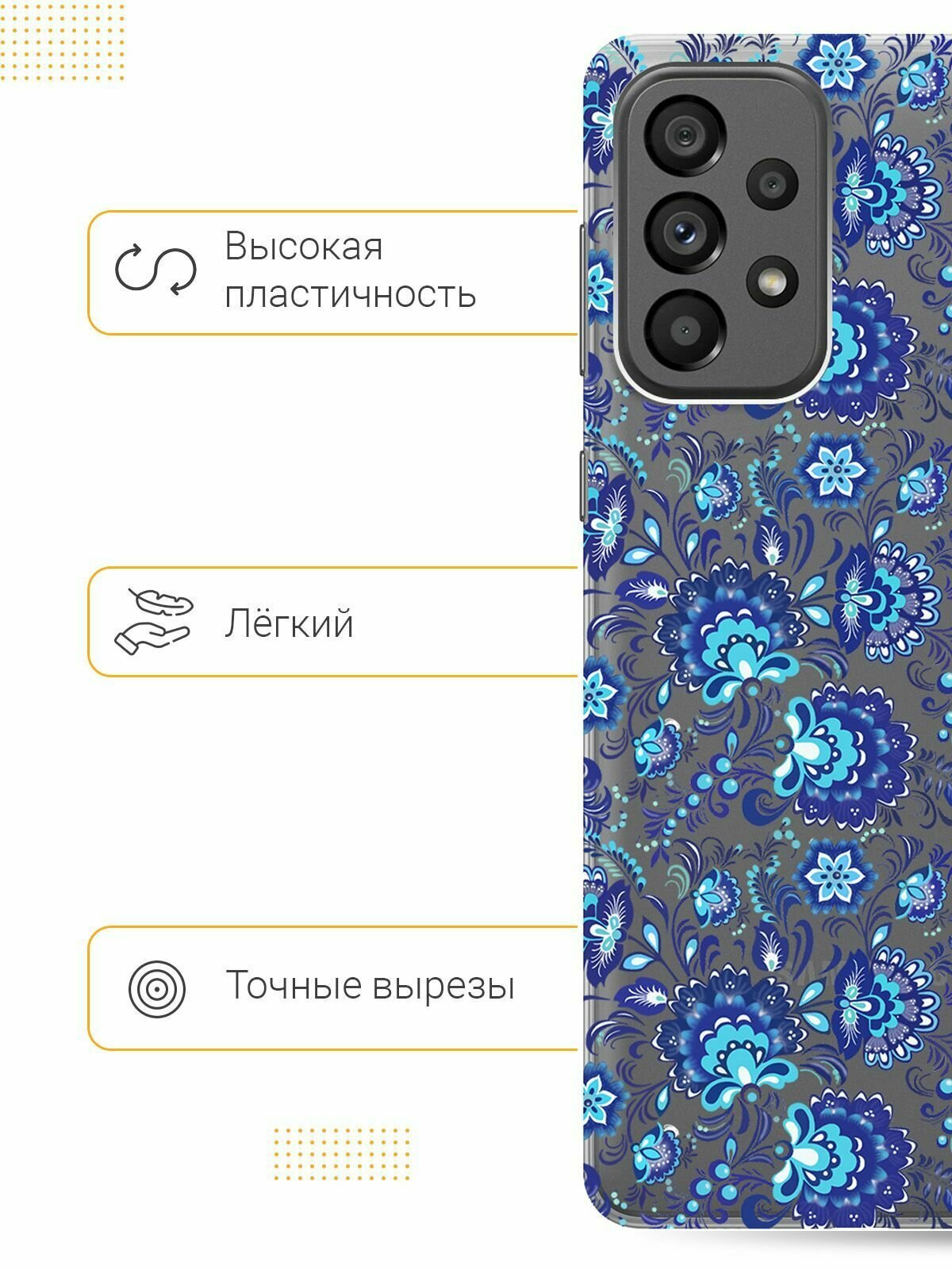 Отзывы на Силиконовый чехол на Samsung Galaxy A73 5G, Самсунг А73 5Г с 3D принтом "Gzhel" прозрачный