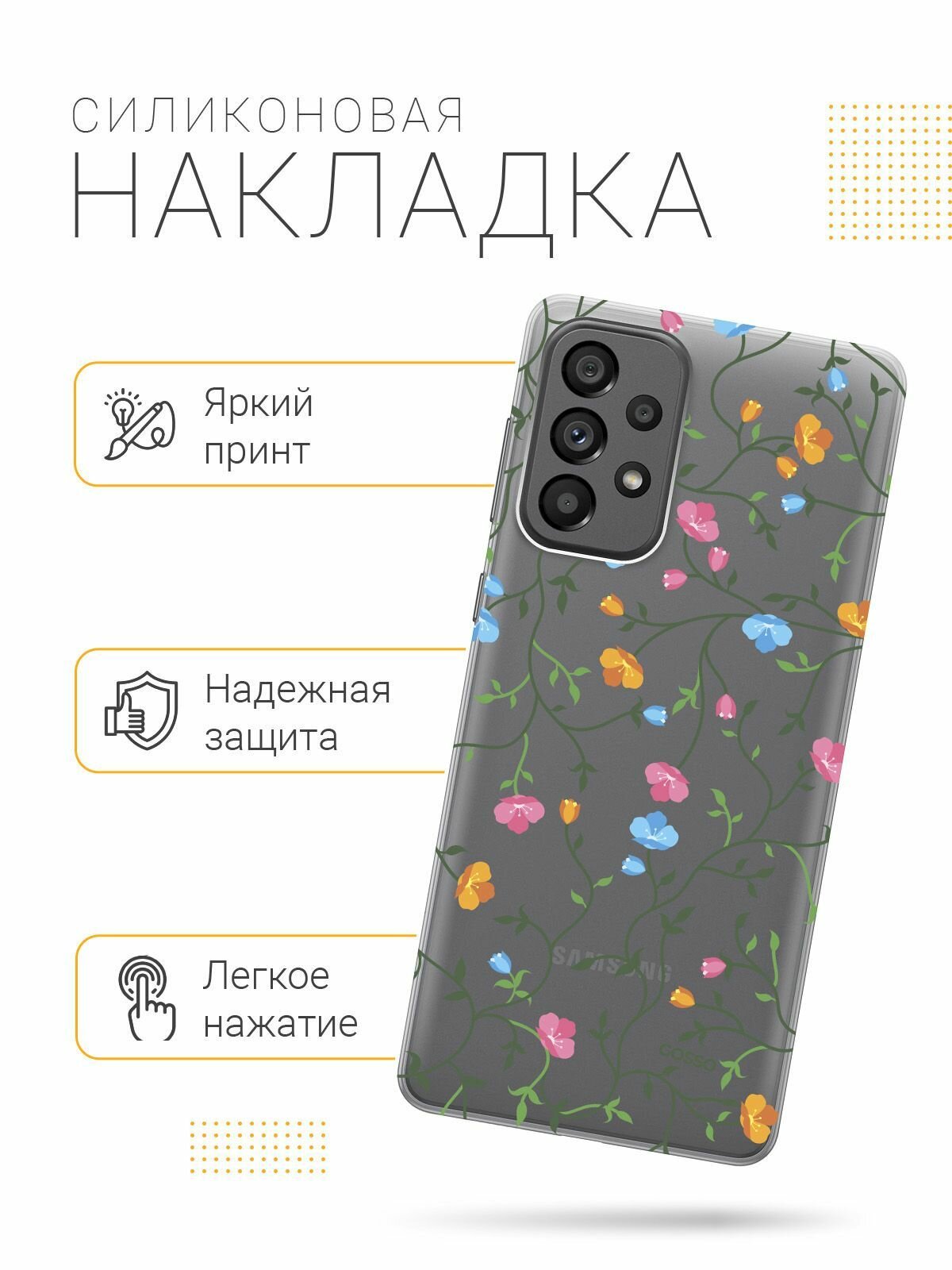 Отзывы на Силиконовый чехол на Samsung Galaxy A73 5G, Самсунг А73 5Г с 3D принтом "Сurly Flowers" прозрачный